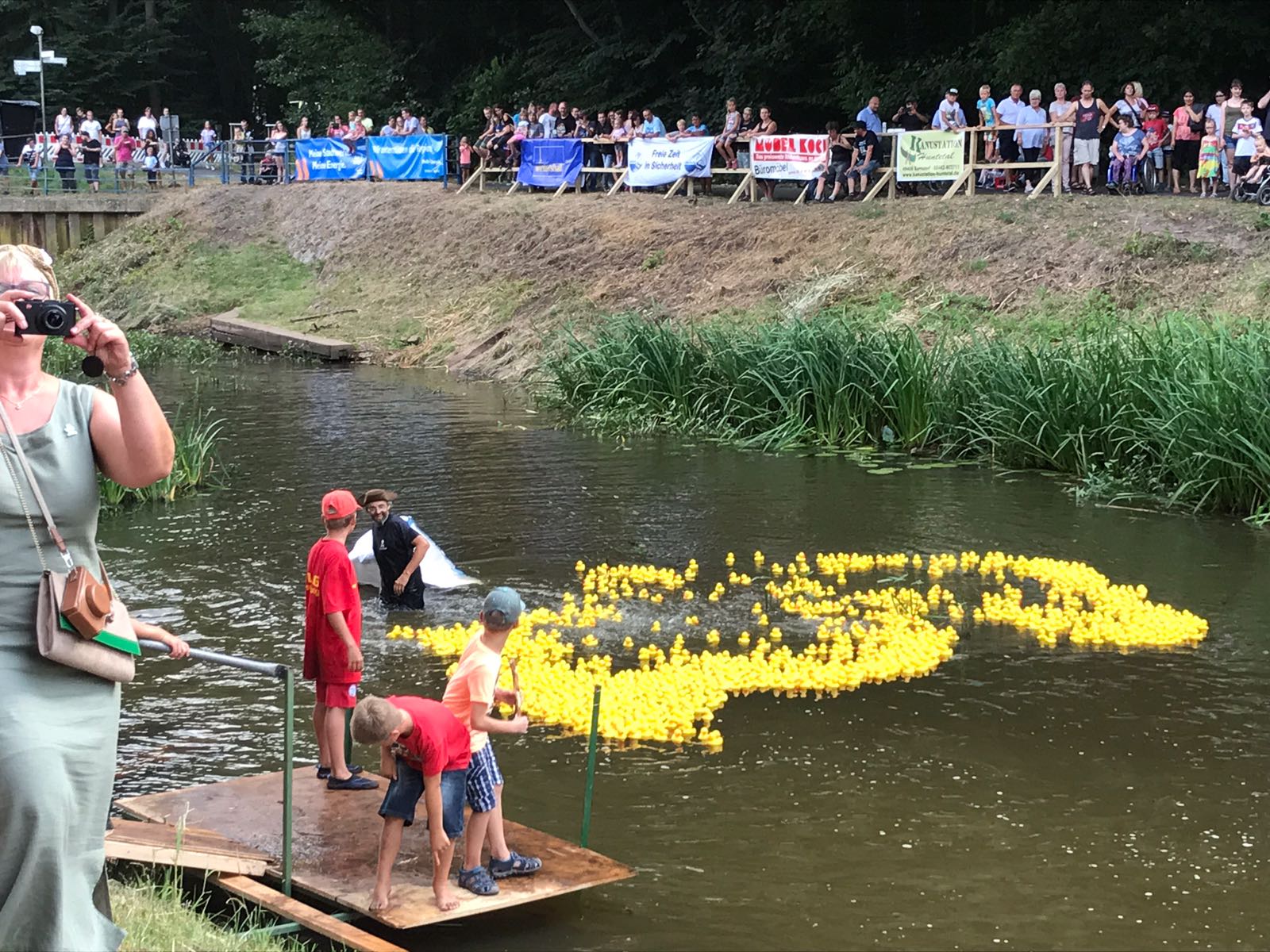 Das Entenrennen zum Huntezauber lockt regelmäßig Tausende Besucher an die Hunte. Kein Wunder, immerhin gibt es einige Hundert Euro zu gewinnen!